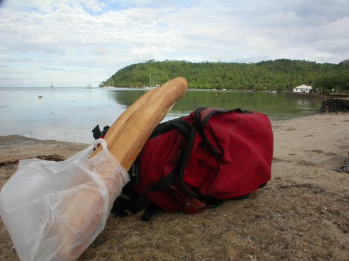 ![]() We left soon after and spent two nights at sea before arriving at Wallis Island. Our digital charts and our paper charts had a difference of opinion as to the location of the reef passage. When we finally located the pass we got a line around our prop, so turned around and headed out to sea to sort out the problem. The skipper went overboard with a knife and snorkel,trying not to get bonked on the head as the boat bounced in the waves. When the prop was free we entered the pass on an ebb tide, bucking a three knot current with whirlpools. We finally anchored off Gahe in 7 meters and had a well-earned nap.Plans are to stay almost a week and then head on to Fiji for more boat repairs. The joys of cruising.